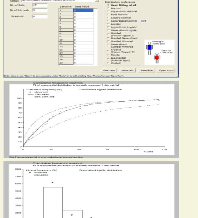 The CumFreq model program calculates the cumulative frequency analysis with probability distribution fitting.