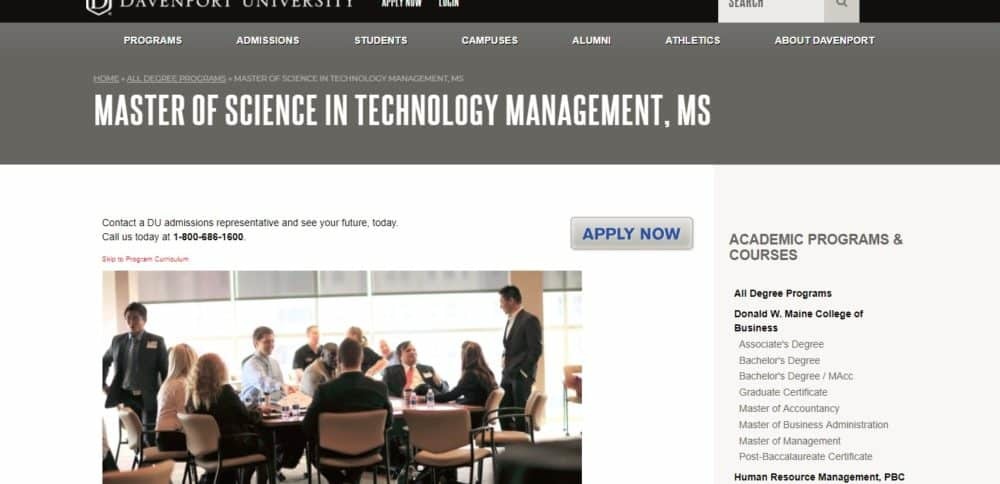 The Davenport University’s Master of Science in Technology Management program features a high quality, interdisciplinary technical and business graduate curriculum in technology management.