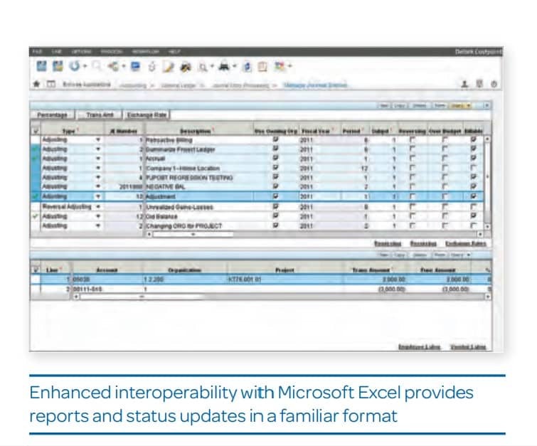 ADDITIONAL INFORMATION It provides intelligent, out-of-the-box and ad-hoc reporting for streamlined operational management to improve decision making. The central repository for integrated contract management that helps you track FAR clauses and provide more efficient contract execution. It addresses compliance and manages risk while maintaining profitability.