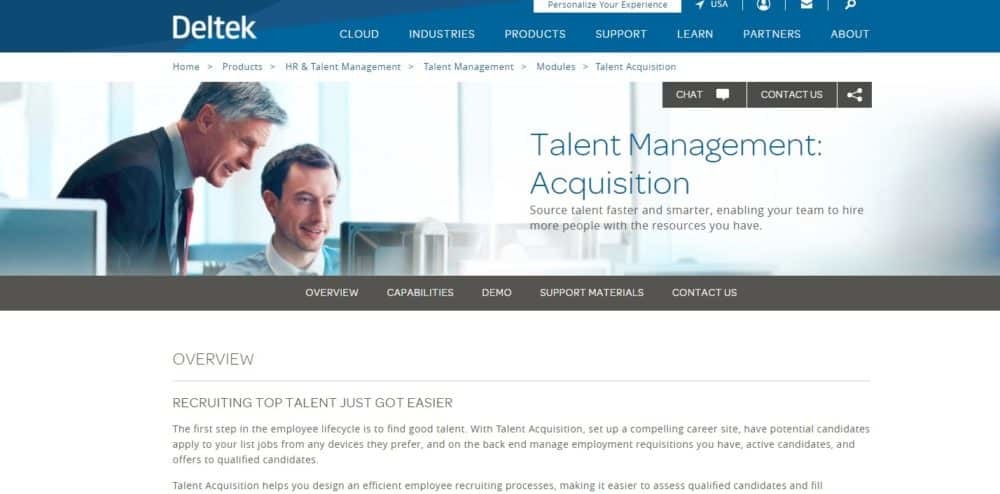 Deltek talent acquisition is a tool which enables the user to source talent faster and smarter thus enabling a team to hire more people with the resources available. With Talent Acquisition, set up a compelling career site, have potential candidates apply to your list jobs from any devices they prefer, and on the back end manage employment requisitions you have, active candidates, and offers to qualified candidates.