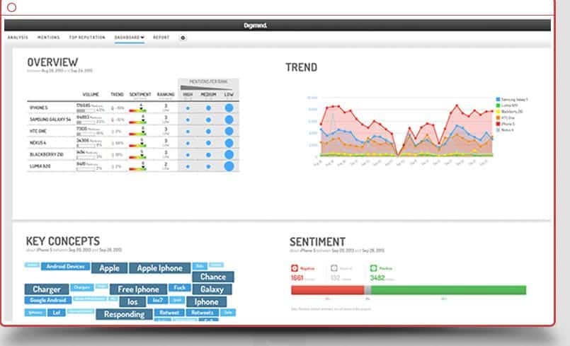 Digimind analyze and benchmark an unlimited number of social accounts simultaneously with Digimind Social Analytics.Top Reputation module, follow in real-time what your customers want to know about your brands, products, people, and those of your competitors, or any subjects that interest you.Digimind’s Social Media Command Center, makes it easy to capture your brand’s social content at any event and display it as a beautiful and engaging social display.