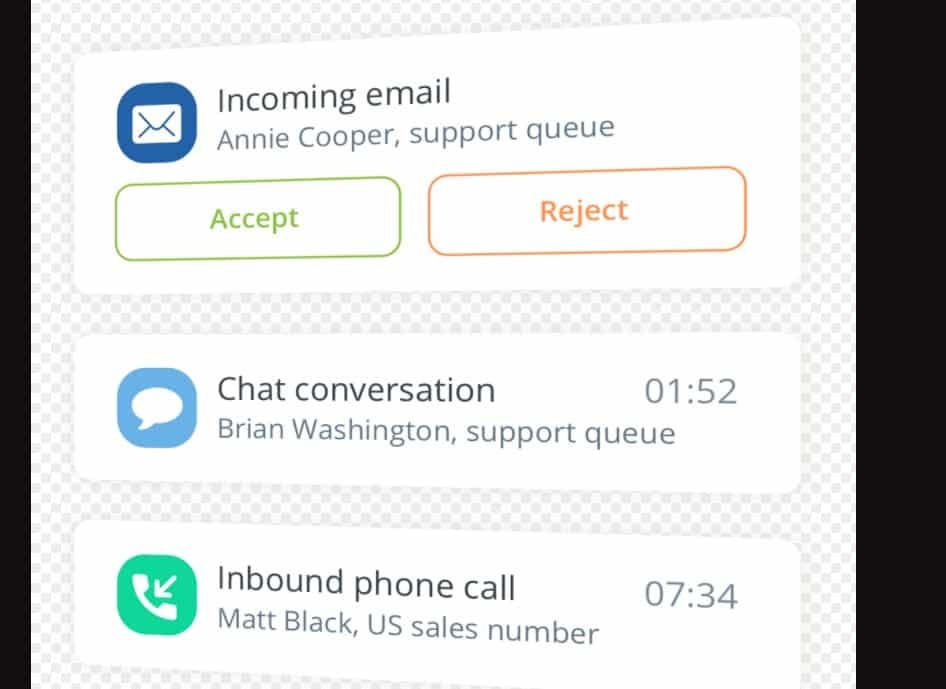 • Multichannel contact center that automatically routes all types of conversations - calls, emails or chats.