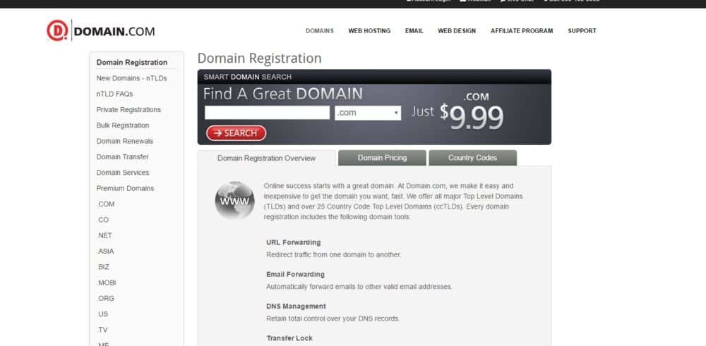 Domain.com makes it easy and inexpensive to get the domain that a company wants and fast. It offers all major Top Level Domains (TLDs) and over 25 Country Code Top Level Domains (ccTLDs).