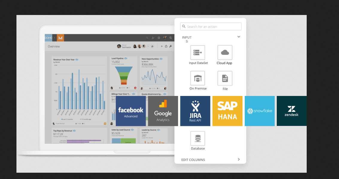 Domo bring together in one platform all the technical components required for business users to get meaningful value from business data. With Domo, users can easily connect, prepare, visualize, collaborate and optimize around data for better decision making and improved performance.