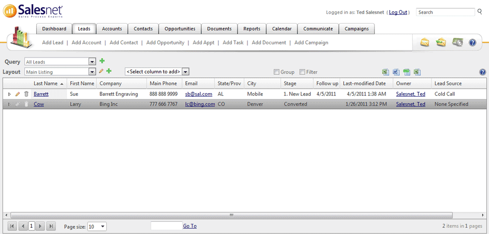 Salesnet is a leading provider of online CRM software specializing in managing and reinforcing successful sales performance. Salesnet CRM™ is extremely configurable, while remaining easy to learn and use, empowering companies to sell more effectively. Organizations such as Kloeckner Metals, Santander Bank and ITSM Academy use Salesnet CRM™ to increase revenues, improve sales and marketing effectiveness, and successfully manage customer relationships.