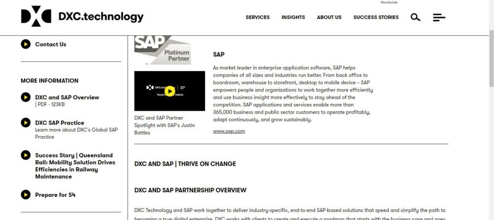 DXC Technology and SAP work together to deliver industry-specific, end-to-end SAP-based solutions that speed and simplify the path to becoming a true digital enterprise.