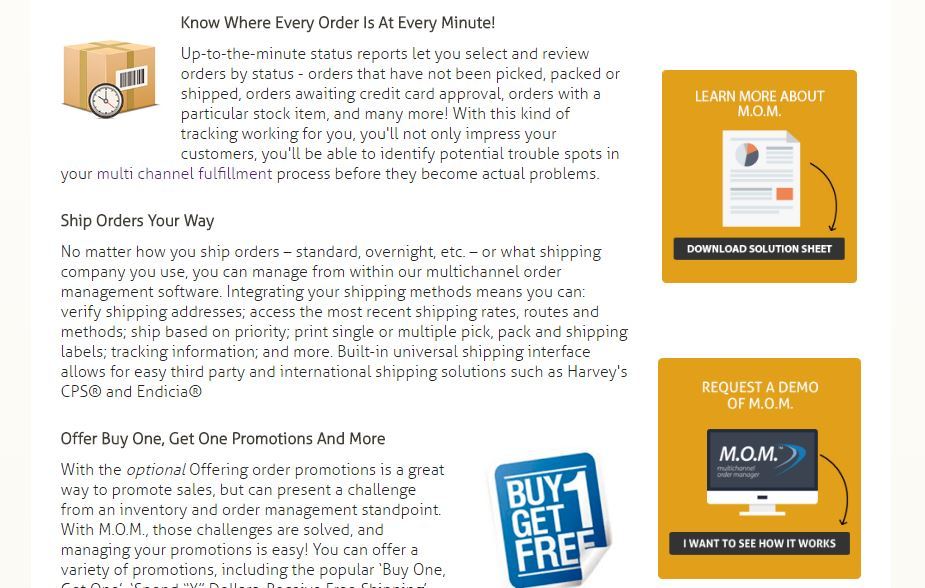 Multichannel Order Manager (M.O.M.) is the leading PCI compliant inventory, order and customer management software solution for small and mid-sized eCommerce, multi channel and distribution businesses.