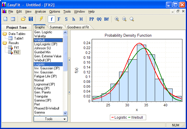 Easy Fit reduce analysis time by 70-95% over manual methods .Easy Fit saves money by preventing analysis errors and make better business decisions .Easy Fit ensures the high quality of your projects .Easy Fit is extremely easy to learn & use . Easy Fit allows to display several graphs of the same type on a single chart, making it easy to compare two or more distribution curves. All graphs support interactive zooming and panning.