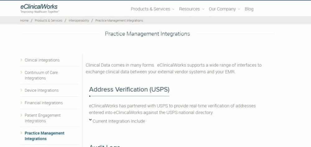 eClinicalWorks is a platform that deals with many forms of clinical data. eClinicalWorks supports a broad range of interfaces that enable it to exchange clinical data between the EMR and external vendor systems. The solutions provided by eClinicalWorks include; better practice management, detailed documentation of clinical data, revenue cycle management, engagement of patients, enhanced patient safety, and population health challenges. eClinicalWorks also provides the practice management integrations that comprise of several features such as address verification, audit logs, scheduling, student information system, maintenance of provider directory, registration, demographics, and MPI query. The audit logs provides vendors with exports of the user action logs that enable them to ensure tracking and privacy of ePHI. eClinicalWorks supports the interfaces used in MPI query, therefore providing an excellent platform for initiating an MPI query to other systems for the purpose of checking the availability of the patient. eClinicalWorks also provides an excellent platform for importing demographics of patients from the interfaced system. The provider directory maintenance feature facilitates integration with external system so that the provider can keep referring to the provider lists in sync by importing such data. The scheduling feature enables eClinicalWorks to follow the messaging protocol so that appointments are kept in sync with other electronic health record and hospital systems. The student information system enables eClinicalWorks to support interfaces with universities. It therefore enables eClinicalWorks to utilize student information systems for the purpose of receiving information based on demographics along with other relevant student details. eClinicalWorks also provides real-time verification of addresses.