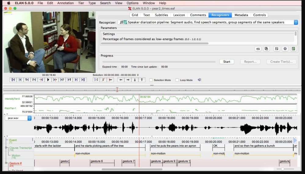 ELAN is a professional tool for the creation of complex annotations on video and audio resources. With ELAN, a user can add an unlimited number of annotations to audio and/or video streams.