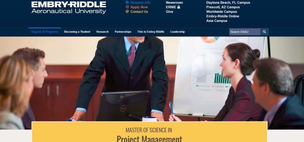 The online Master of Science in Project Management offered by Embry-Riddle Aeronautical University, Worldwide Campus, gives students a solid foundation for of project management skills, tools, and techniques needed to plan, manage and execute projects in a variety of industries.
