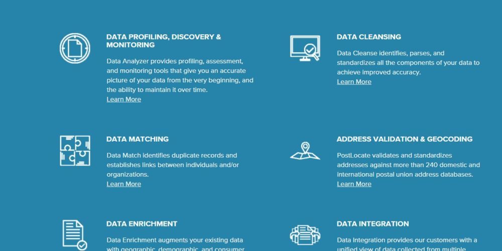 Provides profiling, assessment, and monitoring tools that give you an accurate picture of your data from the very beginning, and the ability to maintain it over time.