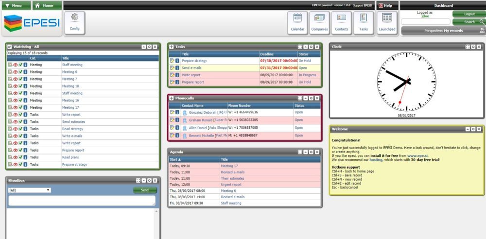 Epesi CRM is an open source multi-user application dedicated for any company or business for rapid development of web based and data base driven applications. It is a tool with a lot of features which enables organizing, processing and storing information in every business.