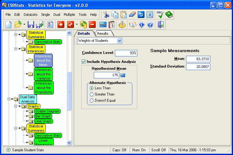 It has been optimized for use with Microsoft Windows XP and above. ESBStats saves a lot of user’s time by doing statistical calculation and analysis automatically. ESBStats stores data in Workbooks. Workbooks can contain many data Lists For example if the workbook is about students data, data lists may be Height of students and Weight of students.