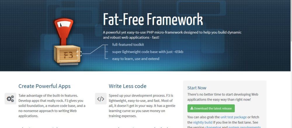 Fat-Free Framework is a powerful yet easy-to-use PHP micro-framework designed to help users to build dynamic and robust web applications - fast! It comes with a full-featured toolkit, super lightweight code base with just ~65kb and it is easy to learn, use, and extend.