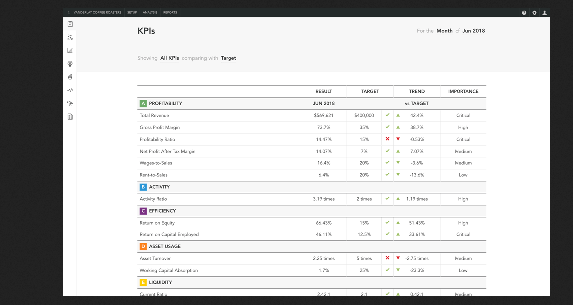 It enables to get a broader framework of various tools for analysis such as cash flow analysis, goal seek, trend analysis, benchmark analysis, ranking, KPI summary, KPI explorer, and profitability analysis. It also helps to effortlessly rank, compare and benchmark the clients, companies or franchises.