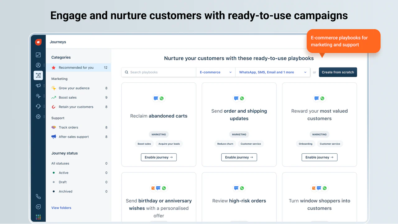 - E-commerce teams building lifecycle automation: especially if you want email + WhatsApp + SMS + chat around cart abandonment, post-purchase, win-back.