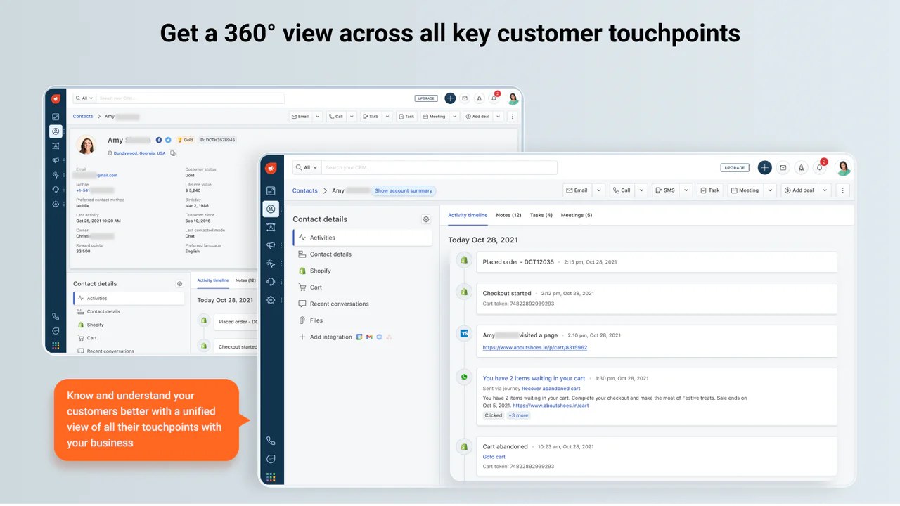 From a platform strategy standpoint, Freshworks later emphasized a unified CRM approach that brings sales (Freshsales) and marketing automation (Freshmarketer) together to support a 360-degree customer view.