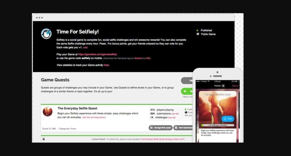 Gametize is the world's simplest gamification platform to reward and motivate using game mechanics. Gametize has a war chest of challenges just for users to launch their game quickly on social media platforms on web and mobile which are all white labeled.