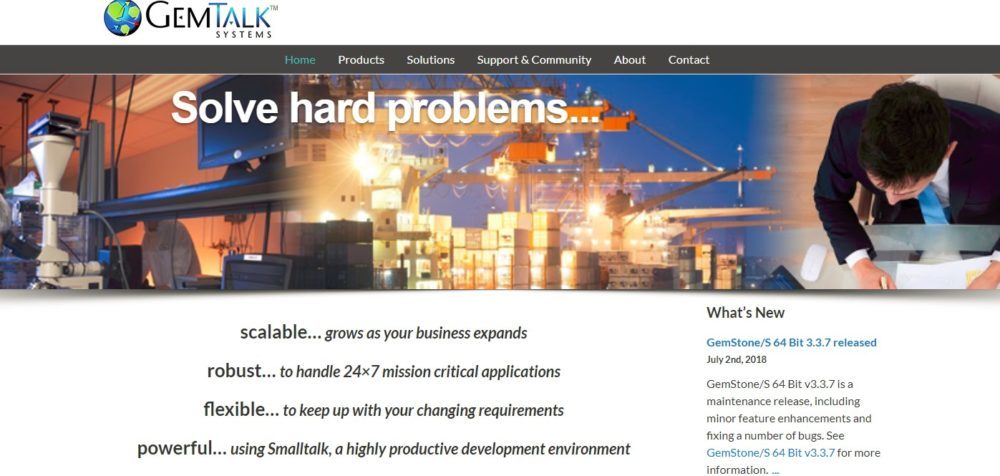 GemStone/S is the state-of-the-art platform for developing, deploying, and managing scalable, high-performance, multi-tier applications based on business objects. GemStone/S provides the flexible distribution of processing, security, and robustness your enterprise needs for a business-critical, run-time environment. GemStone/S supports high-availability online environments that demand 24×7 operation. GemStone/S is based on Smalltalk — a mature, industry-standard language. GemStone/S uses the same object model as Smalltalk, enabling seamless integration with existing Smalltalk applications. GemStone/S provides the unmatched flexibility and power demanded by business-critical applications. GemStone/S lets users model information in structures as simple as the data permits, and no more complex than the data demands. Represent data objects in tables, hierarchies, networks, queues, or any other structure that is appropriate. Each of these objects may also be indexable. Complex data structures can be built by nesting objects of various formats. GemStone defines a set of privileges for controlling the use of certain system services. Privileges determine whether the user is allowed to execute certain system functions usually only performed by the system administrator. It can support large-scale deployments on multiple machines in a variety of network configurations. It can support large-scale deployments on multiple machines in a variety of network configurations. GemStone applications can access objects and run their methods from a number of languages, including Smalltalk, C, C++, or any language that makes C calls (such as COBOL or Fortran). Objects created from any of these languages are interoperable with objects created from the other languages, and can run their methods within GemStone/S.