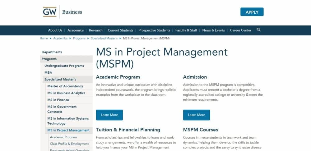 George Washington School of Business,Master of Science in Project Management