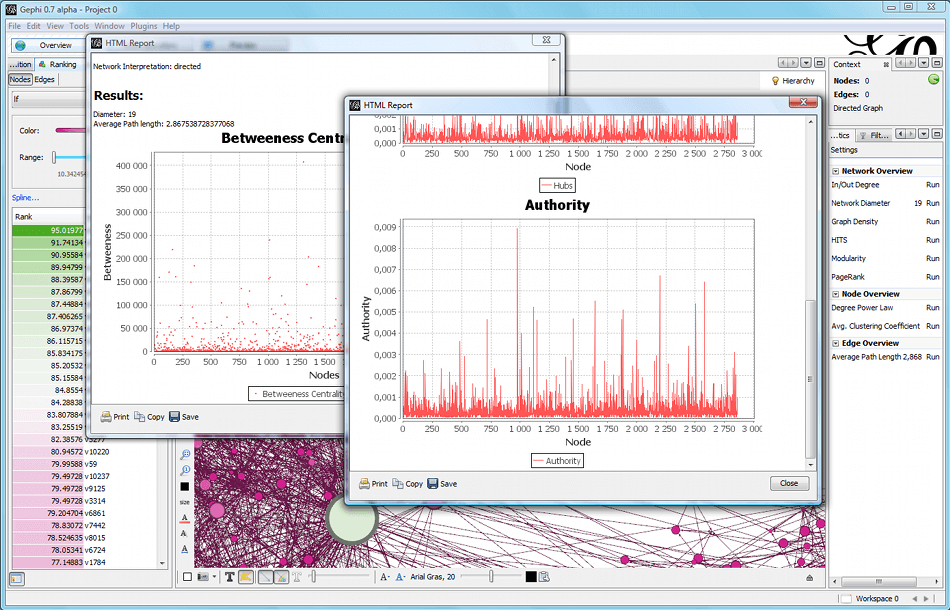 It is a complementary tool to traditional statistics, as visual thinking with interactive interfaces is recognized to facilitate reasoning. Gpphi is a software for Exploratory Data Analysis (EDA), a paradigm appeared in the Visual Analytics field of research.Real-time visualization is powered by its ad-hoc OpenGL engine. Layout algorithms give the shape to the graph. Gephi provides state-of-the-art algorithms layout algorithms for efficiency and quality. The Layout palette allows user to change layout settings while running, and therefore increase user feedback and experience.