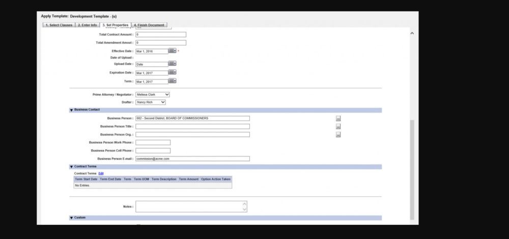 Gimmal Contract Management provides preconfigured and customizable document templates and a standard clause library to introduce greater control over process while streamlining contract creation. Microsoft Word-based wizards, in combination with templates and standard clauses, automate contract creation, standardize basic agreement stipulations, and empower non-legal staff to draft contracts.