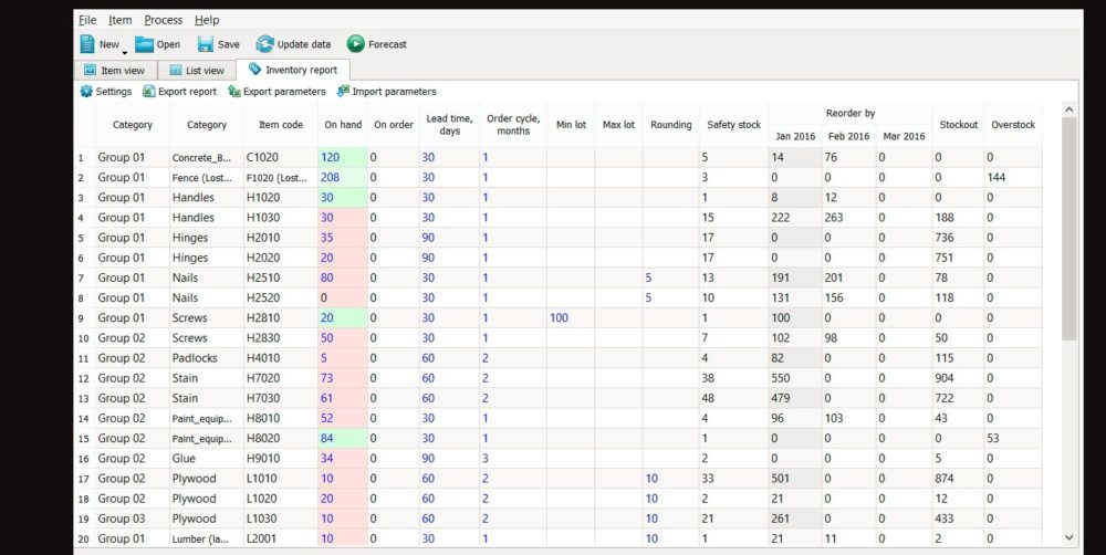 The projected inventory level can also highlight exceptions such as shortfall, potential stock outs and excess stock. GMDH prevents situations of short or excess inventory. Using inventory optimization helps you to target service levels, reduce inventory, and make the best use of your inventory investment. The GMDH Streamline Projected Inventory Level feature calculates and displays the inventory level for future periods.