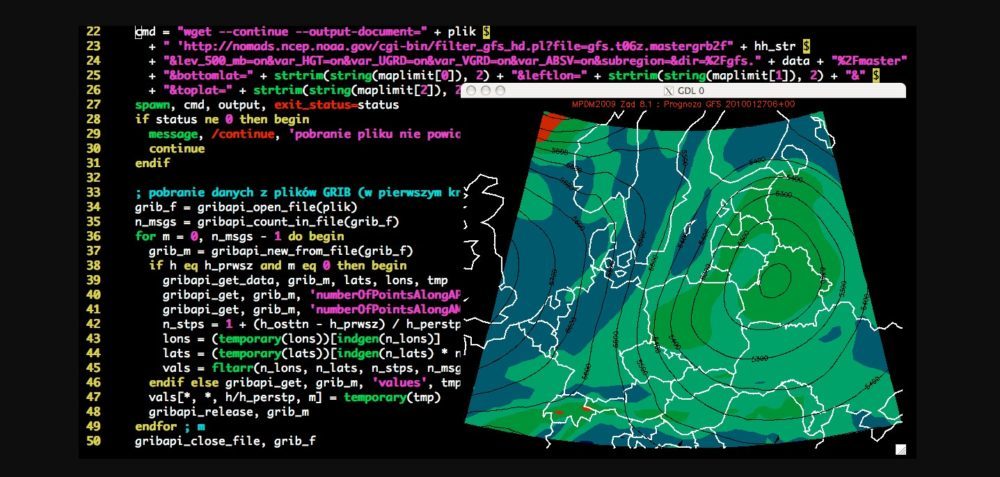 GNU Data Language (GDL) is a free/libre/open source incremental compiler compatible with IDL and to some extent with PV-WAVE and together with its library routines it serves as a tool for data analysis and visualization in such disciplines as astronomy, geosciences and medical imaging. GNU Data Language (GDL) offers features such as GDL library, supports several data formats such as netCDF, HDF4, HDF5, GRIB, PNG, TIFF, DICOM, etc. Graphical output is handled by X11, PostScript, SVG or z-buffer terminals.