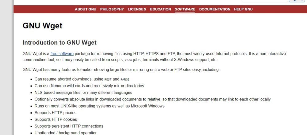 GNU Wget is a free software package for retrieving files using HTTP, HTTPS and FTP, the most widely-used Internet protocols. It is a non-interactive commandline tool, so it may easily be called from scripts, cron jobs, terminals without X-Windows support.