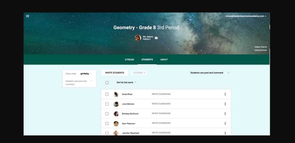 Google Classroom – a free web service developed by Google for schools that aims to simplify creating, distributing and grading assignments in a paperless way. Students can be invited to join a class through a private code, or be automatically imported from a school domain.