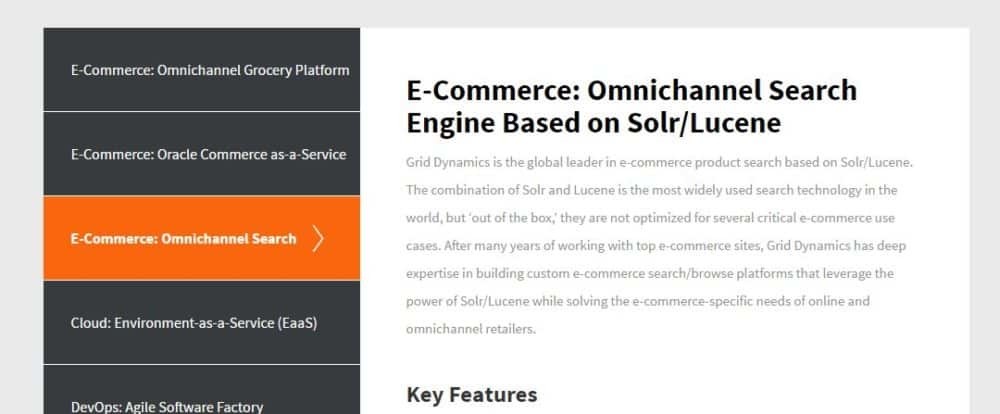 Grid Dynamics is the engineering IT services company known for transformative, mission-critical cloud solutions for retail, finance and technology sectors. It is known to specialize in big data analytics, scalable Omni-channel services, DevOps, and cloud enablement. The four specifications of Grid Dynamics are “architect” which provide scalable, cloud-ready application blueprints, “develop” dealing with innovative and reliable cloud applications and services, “release” which introduces new features continuously with automated test pipelines and “operate” the mission-critical cloud applications & infrastructure.The architectural services provided by Grid Dynamics are blueprint development and customization, cloud readiness assessment and recommendations, new product and platform roadmap consulting, new platform pilots and technology POCs and ongoing architectural consulting and report.Other services provided for e-commerce include Big Data Engineering Services with key use cases in e-commerce and retail, internet advertising, telecommunications and other industries. QA Automation include testing services for all kinds of testing domains. Cloud Engineering has its key use cases in Enviornment-as-a-Service (EaaS), elastic production, cloud enablement, cloud optimization, continuous integration/continuous delivery (CICD), automated test environments and much more. UI/Full Stack Engineering specializing in web language. Release Engineering/DevOps having key use cases in developer self-service, continuation integration, continuous delivery, provisioning and deployment automation, test automation enablement, schema management, code reviews etc. Search Engine Development with its key uses in merchandising rules, Omni-channel and personalized search. Mobile Development provides full lifecycle support for mobile application development. Key services include mobile architecture design, manual testing, publishing and app monitoring.