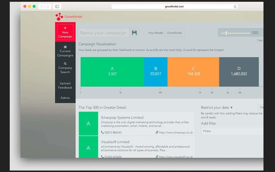 The GrowthIntel team constantly improves their approach and learning how to be better. GrowthIntel also focuses on the predictive marketing technologies that generate opportunities for the future business. GrowthIntel finds the market scientifically. It finds every company that has the potential to become a customer. It can prioritize prospects using campaign visualization. GrowthIntel resources include case studies, webinars, ebooks, and videos for B2B sales and marketing leaders and their teams.