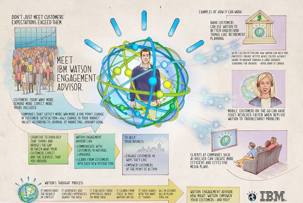 Watson is now extended to new markets across industries, addressing the day to day challenges individuals face in interacting with their banks, insurance companies, retailers, telecommunications providers, and many other institutions. Arming contact center agents and empowering individuals with a self-service capability, Watson went to work redefining how individuals and organizations will interact over the lifetime of their relationships.