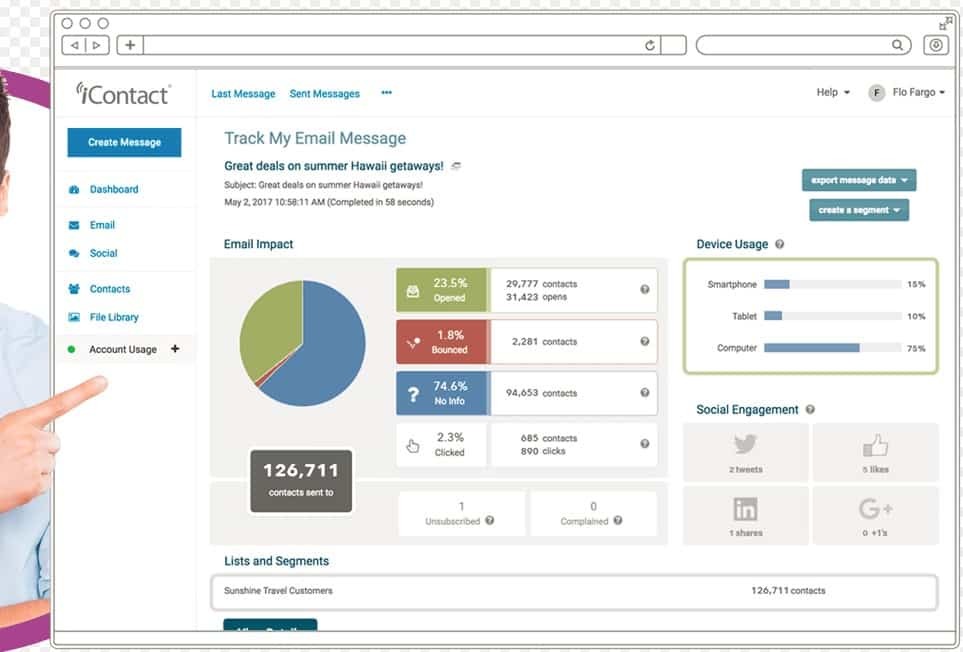 The iContact Pro is a simple marketing automation platform which seamlessly integrates email marketing, landing pages, social media management, and robust analytics in a simple but comprehensive cloud-based solution that helps customers outsmart the competition and grow their business.