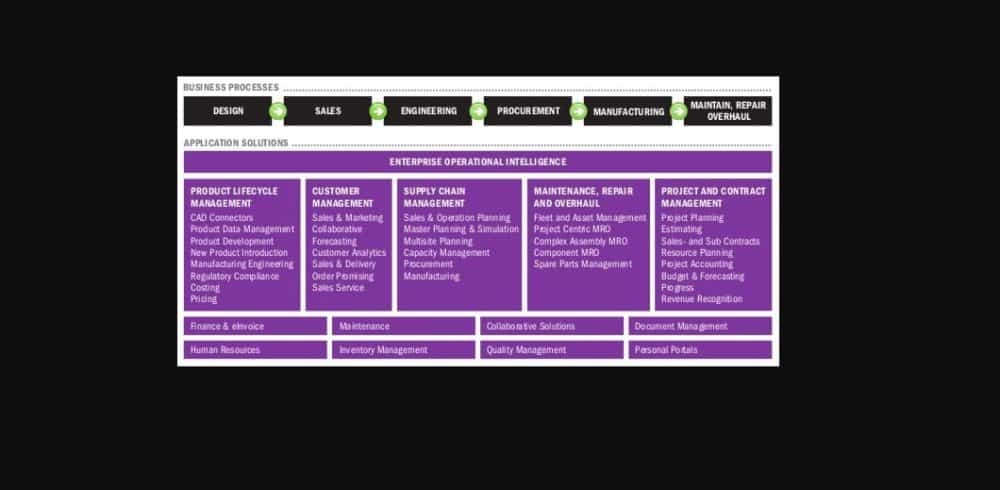 It includes all of the functionality you would expect from a tier one ERP software suite, plus powerful embedded functionality that extends the application into other crucial areas of your business. The application can be configured for a variety of settings including but not limited to discrete manufacturing, process manufacturing, multi-mode manufacturing, construction and engineering.