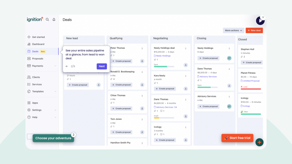 Not ideal for: product-based businesses, teams that only need a standalone proposal designer, or firms that want a full practice management suite as their primary system of record (Ignition is designed to integrate with practice management tools rather than fully replace them).