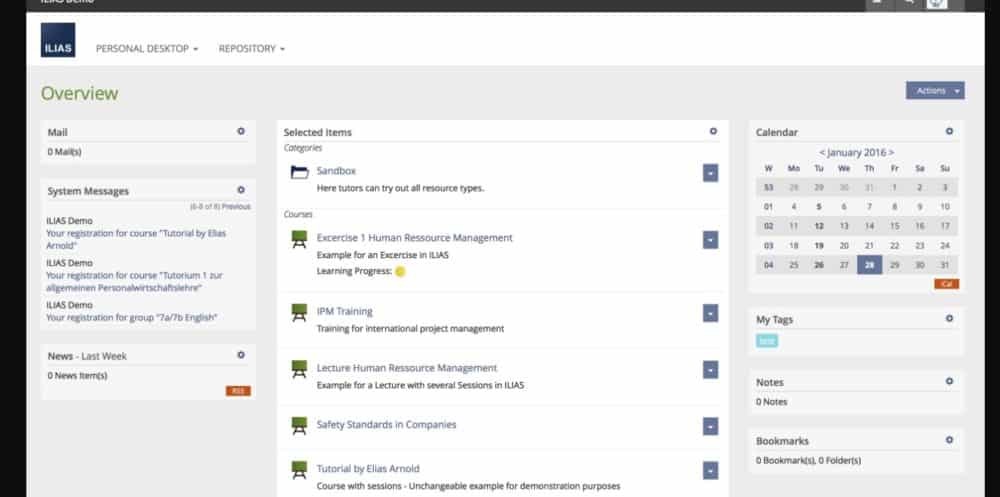 ILIAS is a tool that offers flexible online working and learning environment with integrated tools. ILIAS is versatile: Course management, learning modules, test & assessment, portfolios, surveys, wikis and blogs are all built into the core, making ILIAS a "one-stop solution" for your e-learning needs.