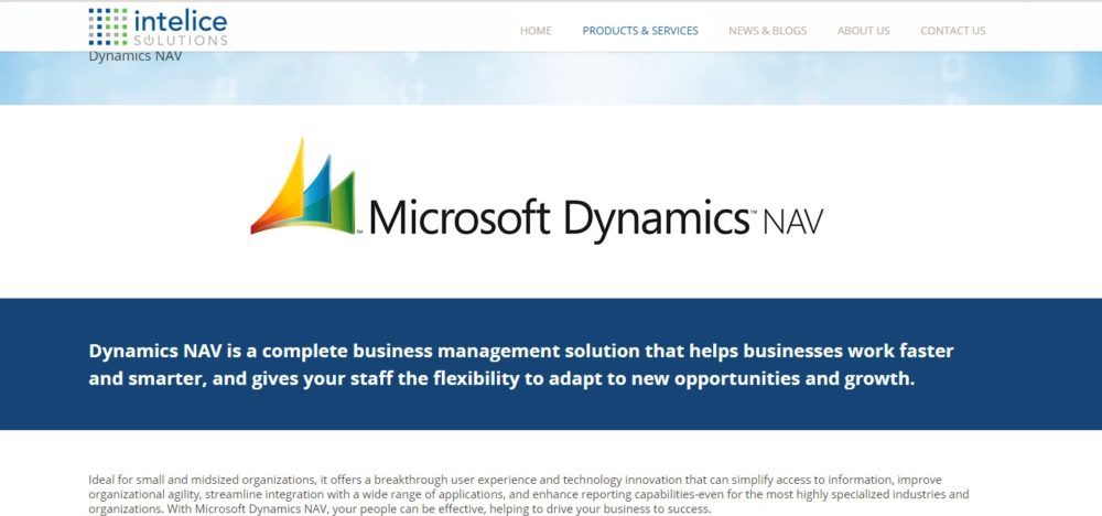 With Microsoft Dynamics NAV, your people can be effective, helping to drive your business to success. Intelice Solutions is a leading provider of Information Technology services and solutions to small and medium sized organizations.