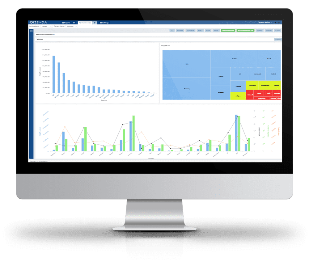 Izenda is an embedded BI platform that allows organizations with on premise, cloud, SaaS and enterprise application to deliver self-service reports, dashboards and visualizations inside their software.
