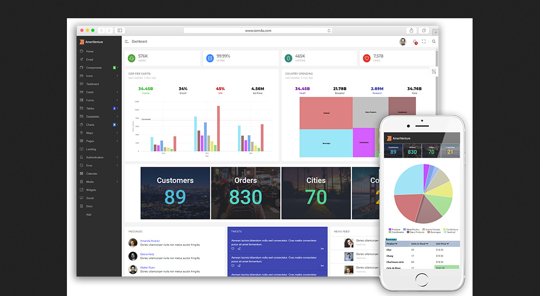 Izenda can be deployed as a self-service analytics portal, or seamlessly integrated with Software as a Service (SaaS), on-premise or hybrid applications on any technology stack. The platform leverages a modern, 3-tier embedded architecture that is lightweight, modular and extendable.