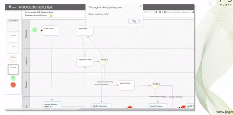 Joget offers full-fledged agile application development capabilities (consisting of processes, forms, lists, CRUD and UI), not just back-end EAI/orchestration/integration or the task-based interface for traditional workflow/BPM products. So for example, build a sales force automation app instead of just a sales quotation approval process. With a comprehensive plug-in architecture, developers are also able to easily extend the platform and integrate Joget Workflow with other systems whenever required.