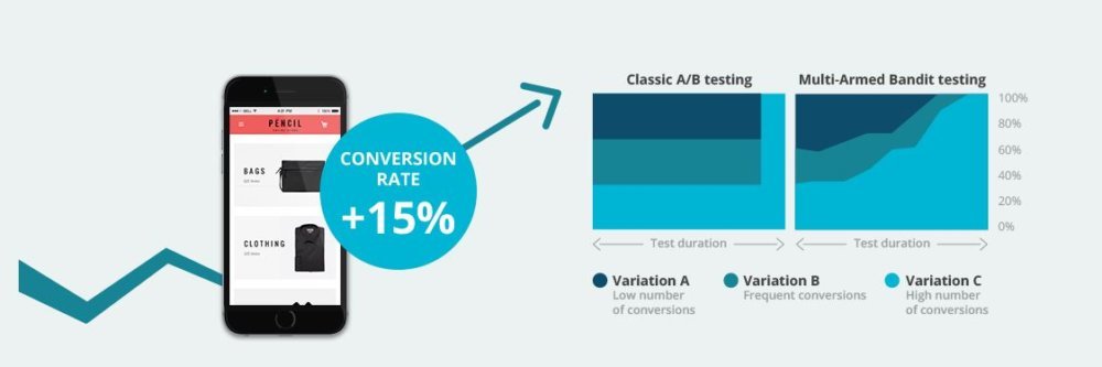 Kameleoon shorten your decision cycle by relying on dynamic traffic allocation algorithms (multi-armed bandit tests), filtering and segmenting the results depending on all type of criteria: device used, day, etc