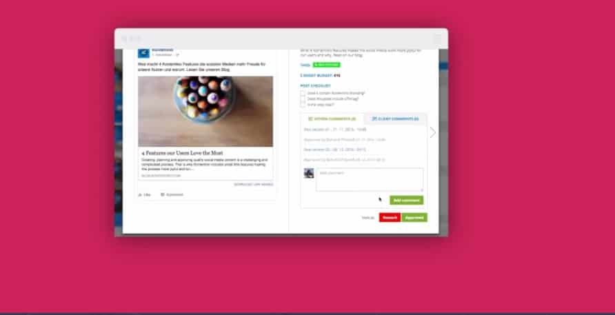 Kontentino – an intuitive social media management tool with content calendar simplifying social media approval process. Clients comment or approve posts in Kontentino’s calendar with just one click.