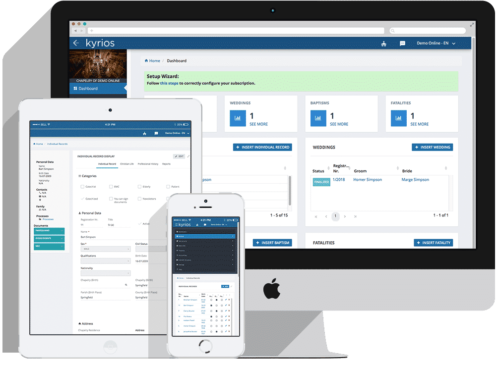 Kyrios ChMS is a Church Management Solution, responding to the specific needs of all the institutions that are part of the Church ecosystem (Dioceses, Commissions, Departments, Parishes, Movements, Fraternities ...) in terms of internal and external communication and also in terms of process management.