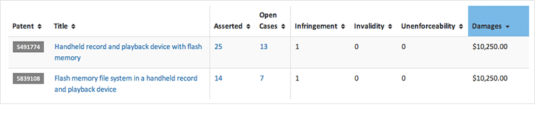 Lex Machina provides users the ability to search and view every PTAB document and exhibit. PTAB-specific filters enable users to analyze specific trials. Attorneys can create a case list and run an enhanced Patent Portfolio Report, which provides the complete litigation history for a patent portfolio, across district courts, PTAB, and ITC.