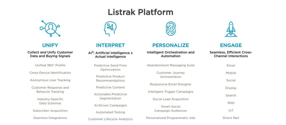 Listrak is a marketing automation platform that uses predictive analysis and artificial intelligence that enables marketers to expand their campaigns through all kind of sources such as purchasing and browsing, online and offline, and mobile and desktop.