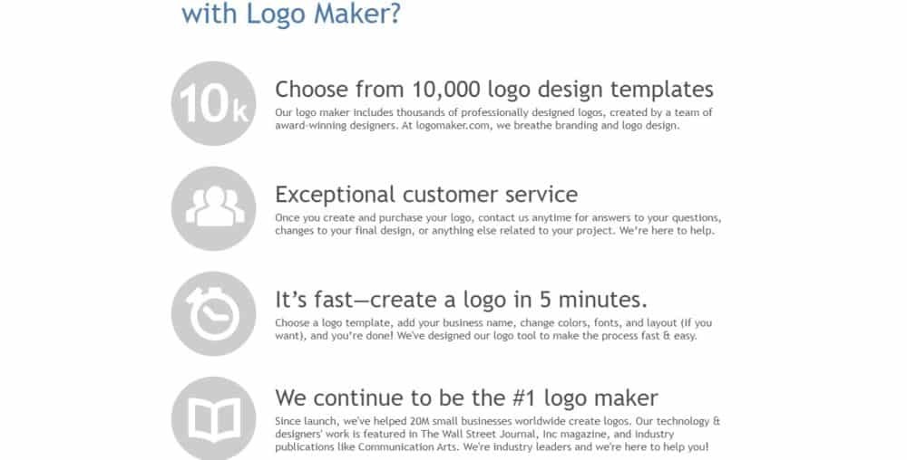 Logo Maker is a great choice for the new business owner who is looking to get a basic logo designed and up on their website fast. They market efficiency and definitely deliver. There is almost no learning curve when it comes to figuring out how to use the website to make a logo. Anyone can decide, point, and click, and that’s basically all Logo Maker requires.