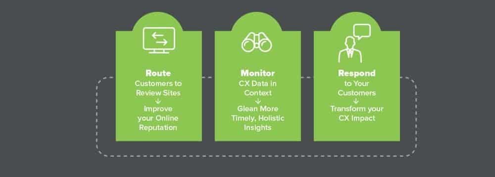 •Turn traditional CX surveys into positive online reviews, improving online reputation at the local level
