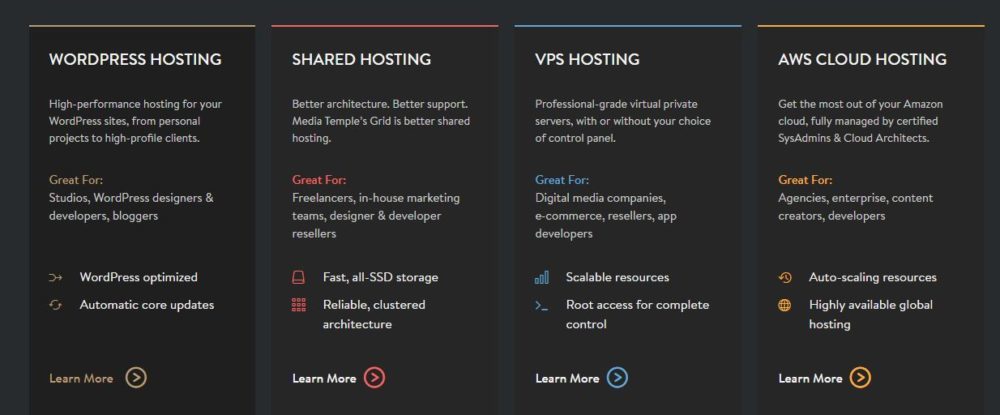 Few web hosts offer everything from world-class shared hosting with one-click WordPress installs to Linux-based VPS hosting and even a private cloud service—but Media Temple does. Furthermore, when comparing the real costs, Media Temple gives its users more for their money. Faster hardware, smarter software, and top-notch support might cost a few more dollars, but they think they’re worth it and their customers agree.